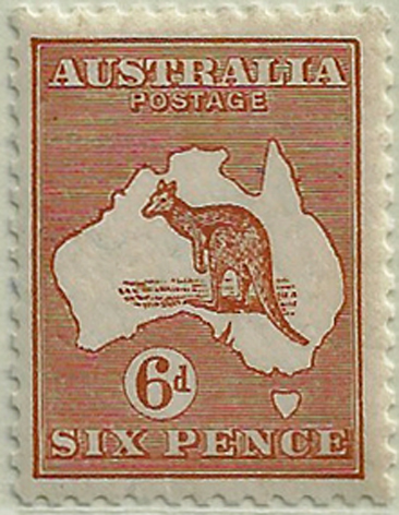 1d. RED KANGAROODie 1 (Plates A, B, C.)First Watermark (T1)
